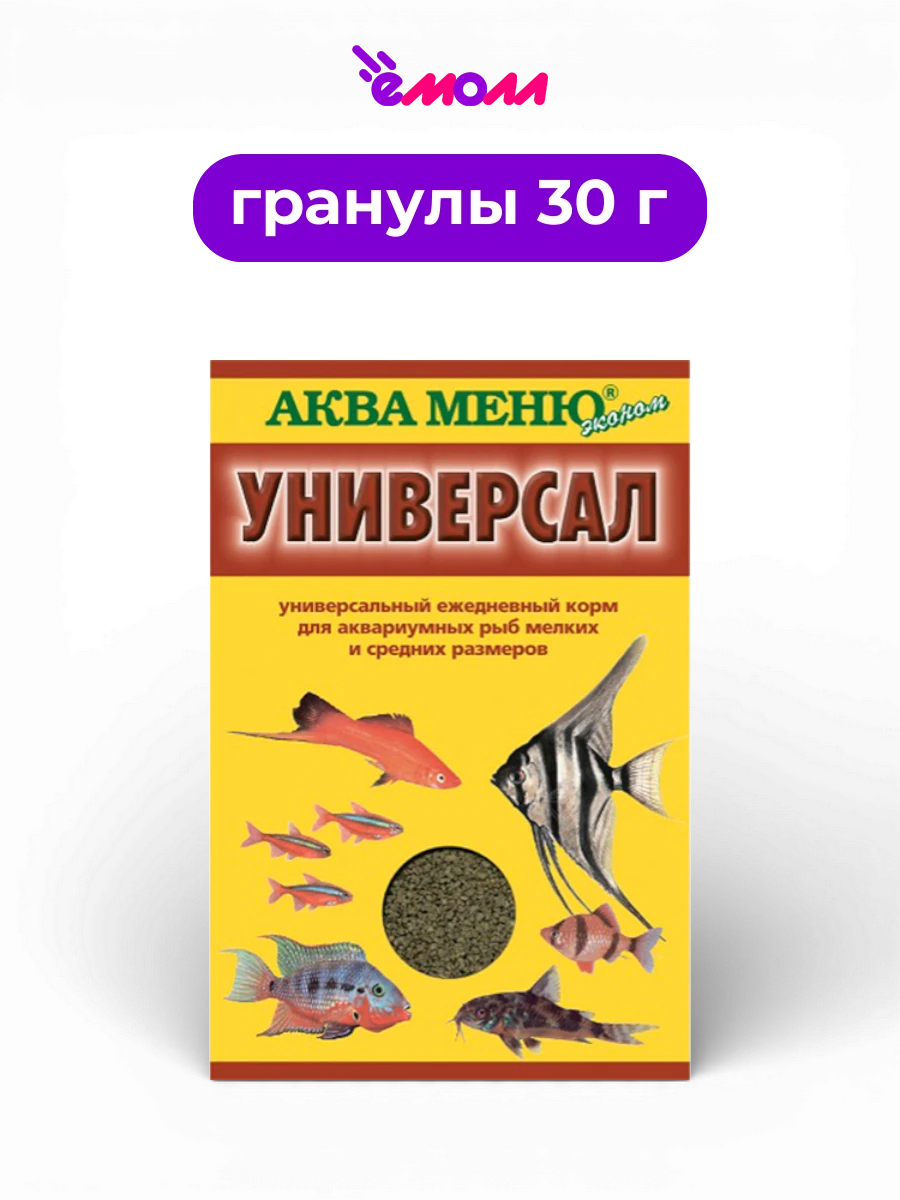 Аква-Меню корм для мелких и средних аквариумных рыб универсальный тонущие гранулы Универсал 30 г
