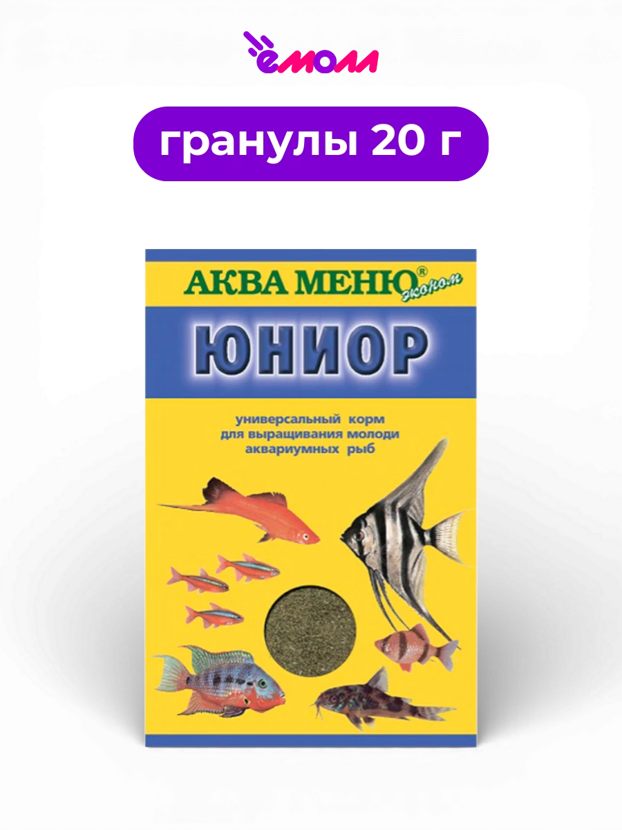 Аква-Меню корм для молоди аквариумных рыб высокобелковый тонущие гранулы менее 1 мм Юниор 20 г