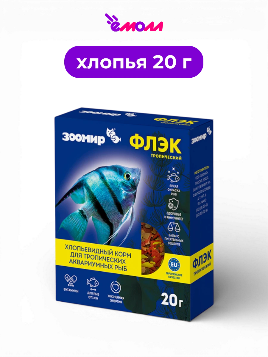 ЗООМИР корм для тропических аквариумных рыб хлопья Флэк 20 г