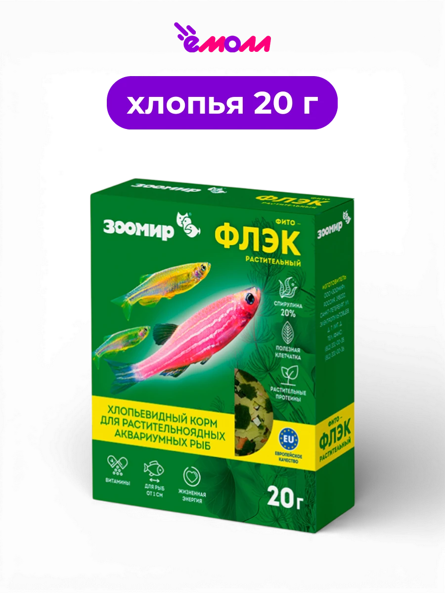 ЗООМИР корм хлопья для растительноядных аквариумных рыб Фитофлэк 20 г