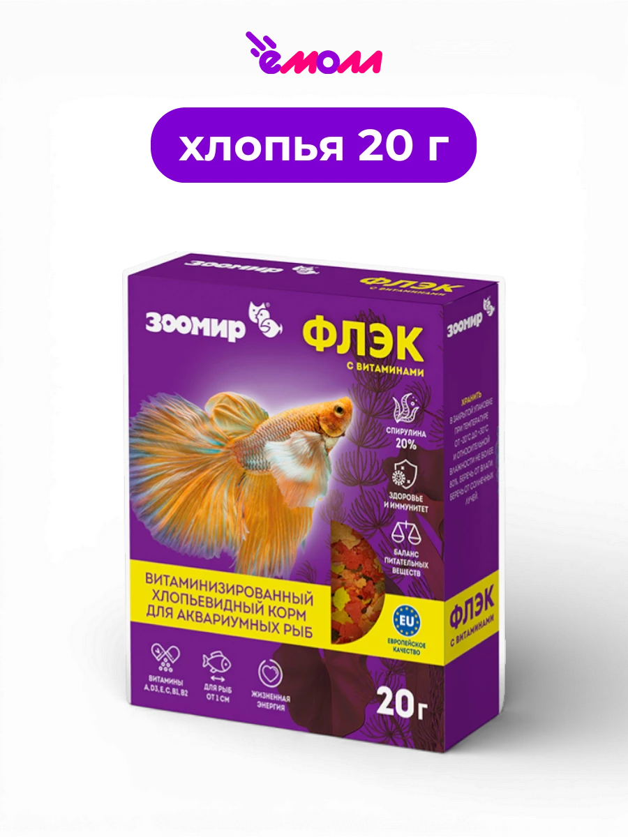 ЗООМИР витаминизированный хлопьевидный корм для аквариумных рыбок Флэк 20 г