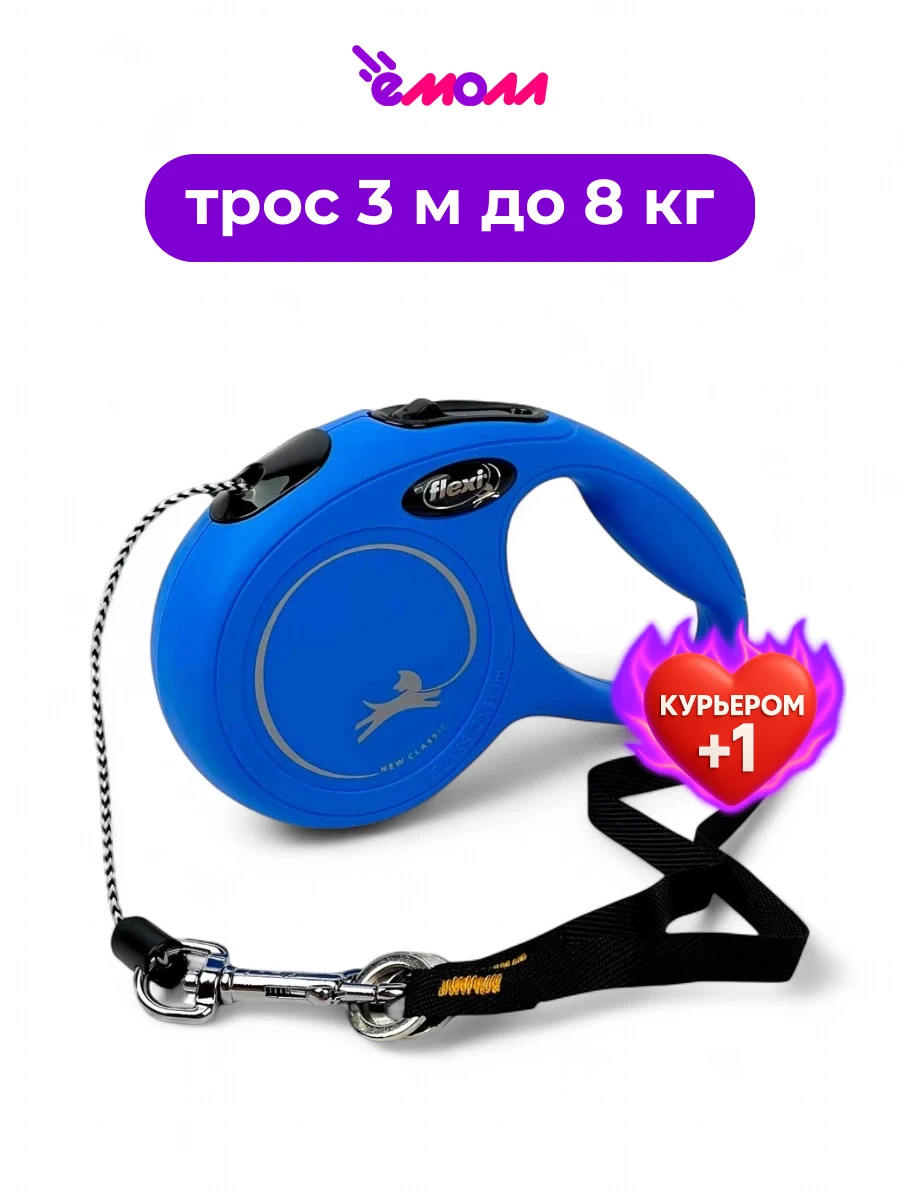 Flexi поводок-рулетка трос для собак New Classic XS синий до 8 кг, 3 м