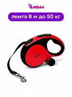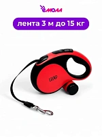 Lelap поводок-рулетка лента для собак «Rouge» со съемным дозатором для пакетов красный до 15 кг, 3 м