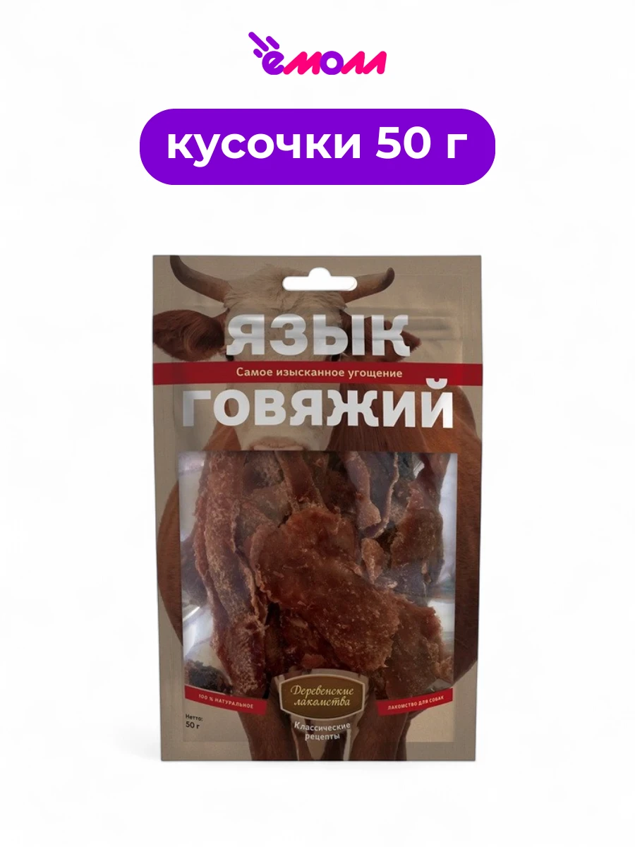 Деревенские лакомства говяжий язык лакомство для собак 50 г