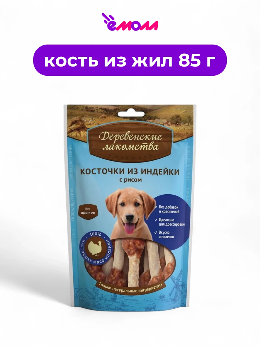 Деревенские лакомства косточки из индейки с рисом для щенков 85 г