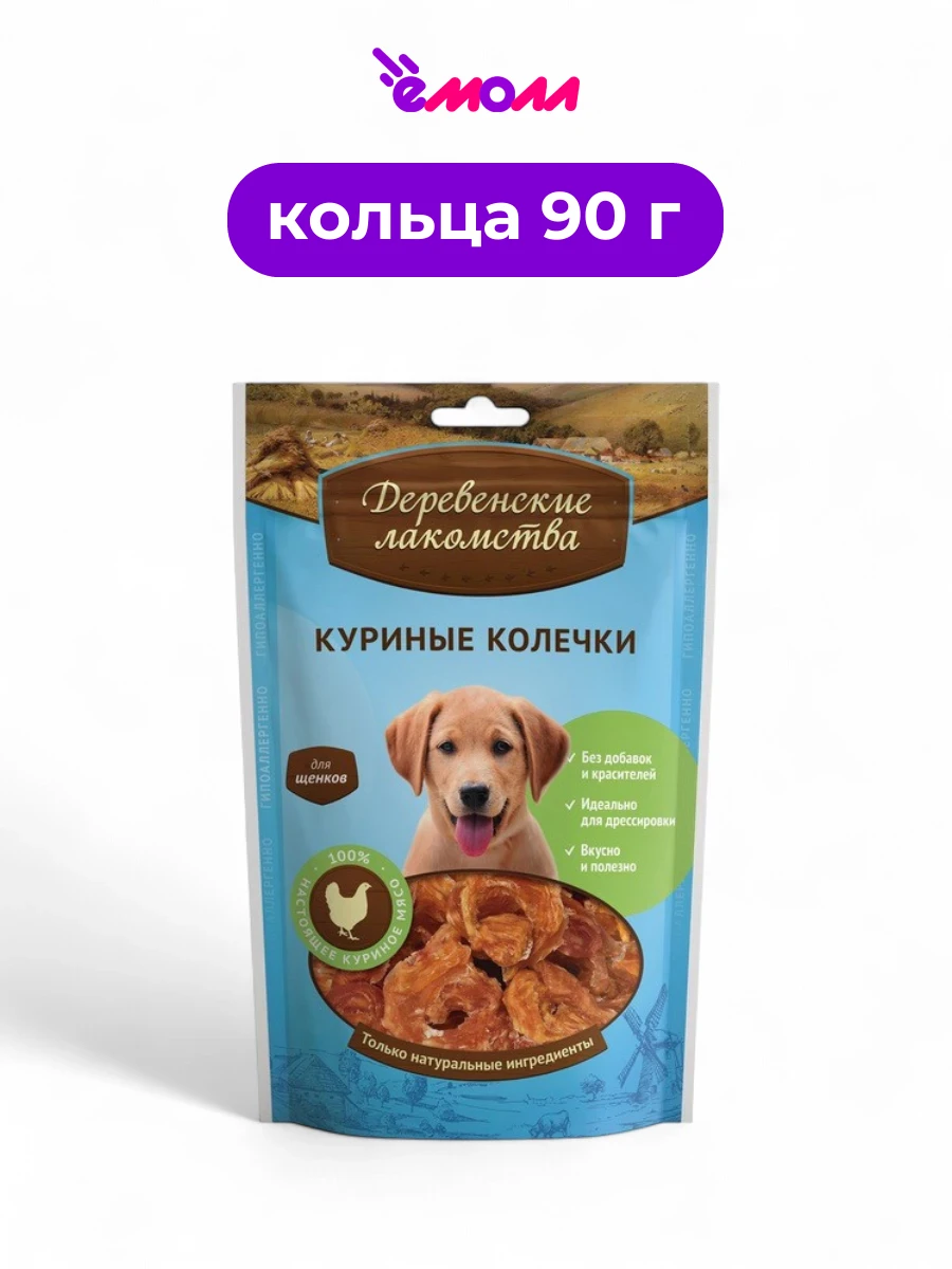 Деревенские лакомства лакомство для щенков куриные колечки 90 г