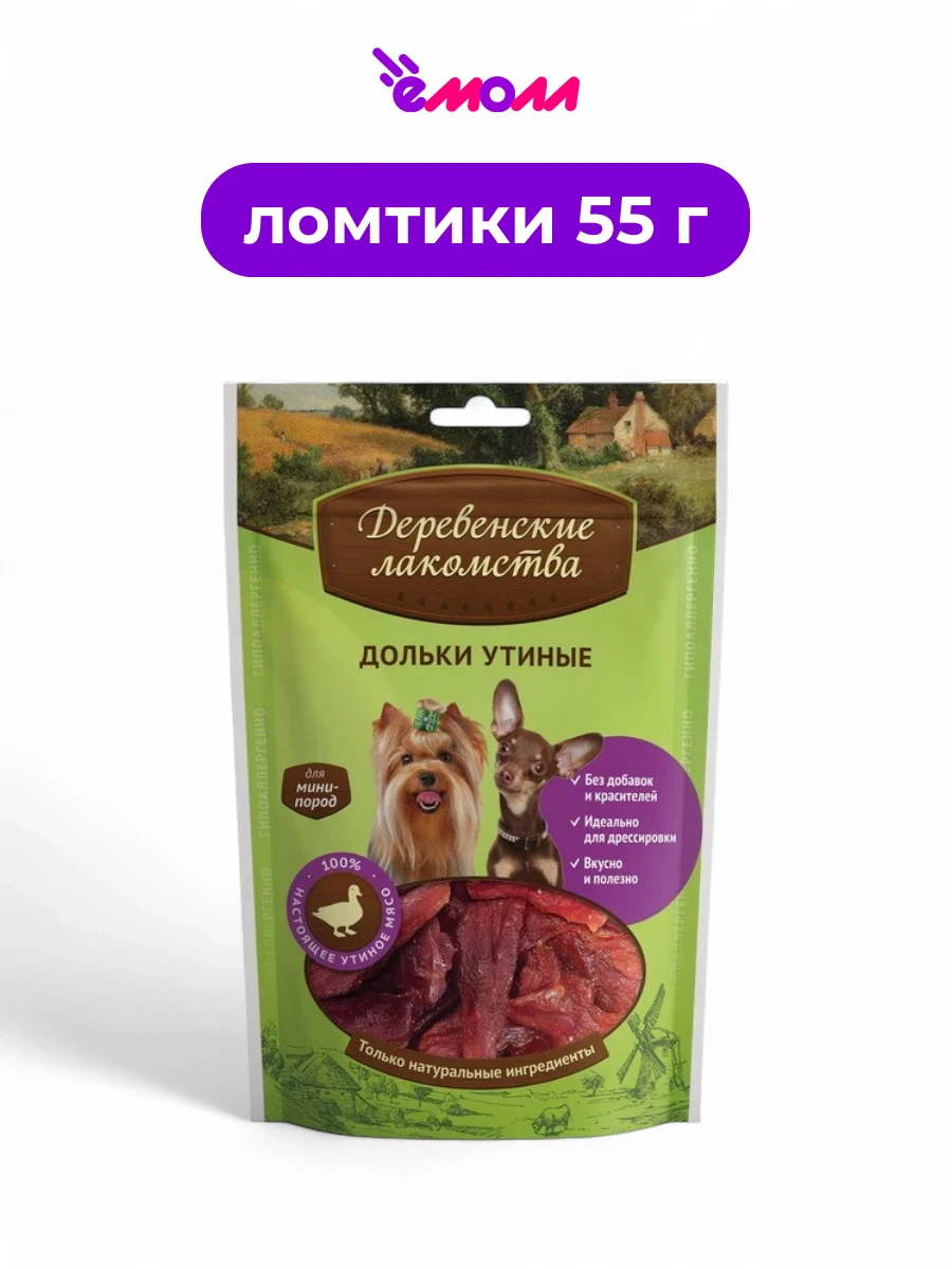 Побалуйте своего маленького питомца нежными утиными дольками от «Деревенских лакомств». Эти лакомства специально разработаны для собак миниатюрных пород, обеспечивая им вкусное и полезное угощение.