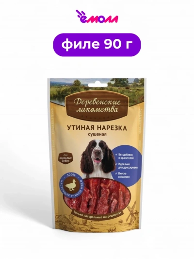 Сочные ломтики сушеной утиной нарезки от «Деревенских лакомств» станут идеальным поощрением для вашей собаки. Благодаря натуральному составу и высокому содержанию белка, это лакомство не только вкусное, но и полезное.