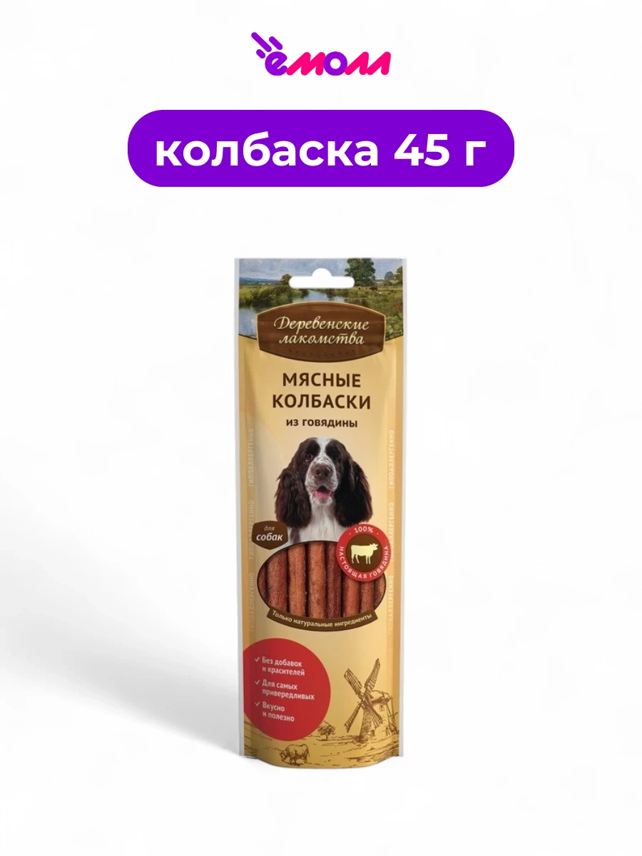 Лакомство для собак «Деревенские лакомства» в виде мясных колбасок из говядины — это натуральное угощение, созданное для поощрения и радости вашего питомца. Благодаря использованию свежайшей говядины, эти колбаски обладают насыщенным вкусом и ароматом, привлекающим собак всех пород и размеров.