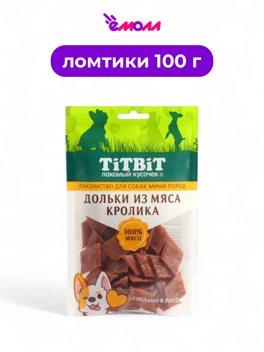 Titbit лакомство для собак миниатюрных пород дольки из мяса кролика 100 г