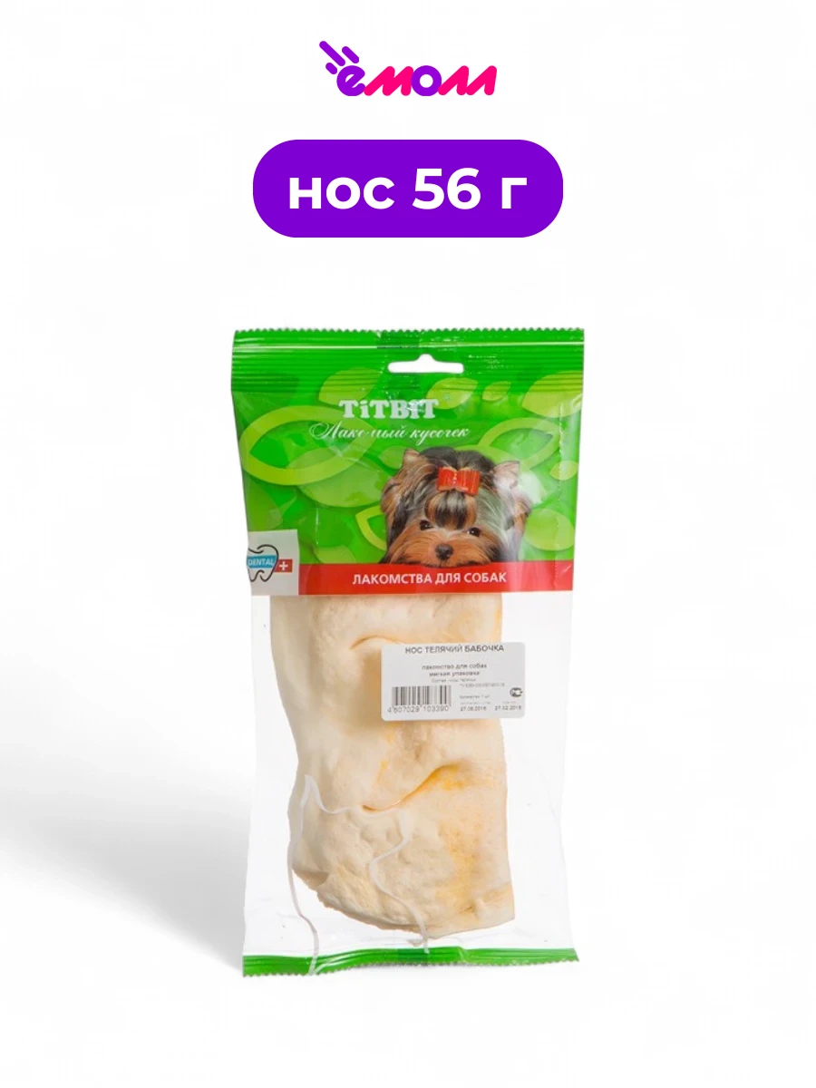 Titbit лакомство для собак нос телячий бабочка 56 г
