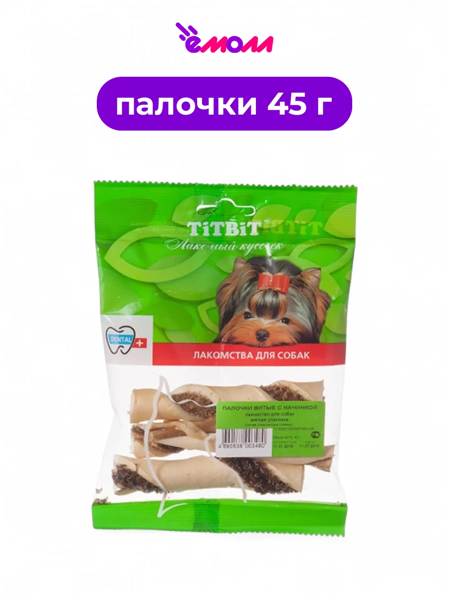 Titbit лакомство для собак палочки витые с начинкой 45 г