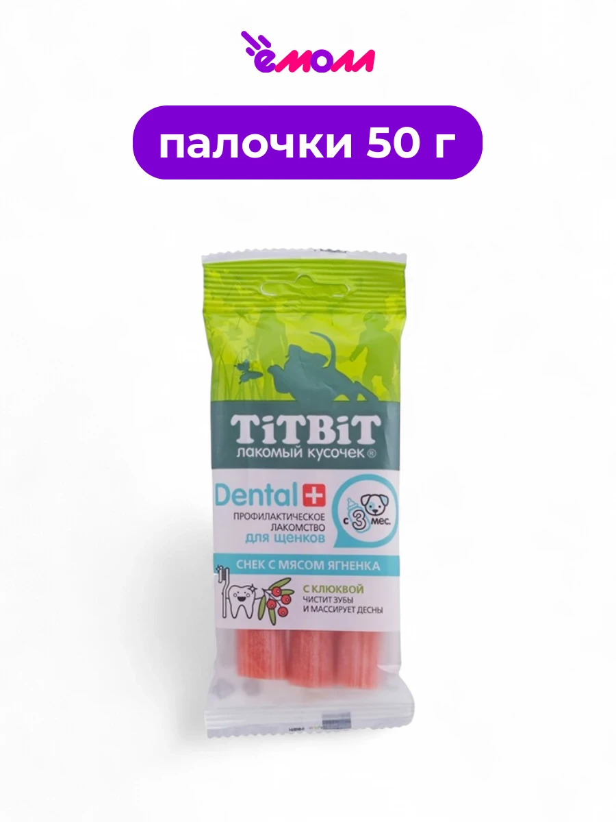 Titbit лакомство для собак снек с мясом ягненка для щенков средних пород Dental Plus 50 г