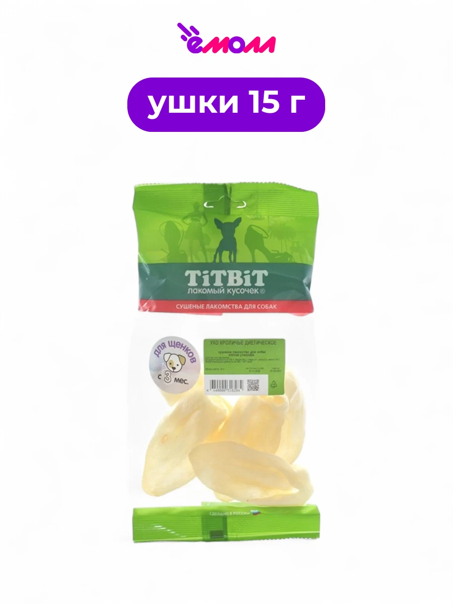 Titbit лакомство для собак ухо кроличье диетическое 15 г