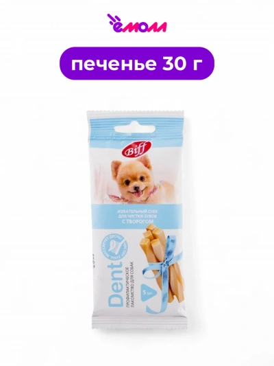 Жевательный снек TiTBiT DENT с творогом предназначен для собак миниатюрных пород и служит не только вкусным лакомством, но и эффективным средством для поддержания гигиены полости рта.
