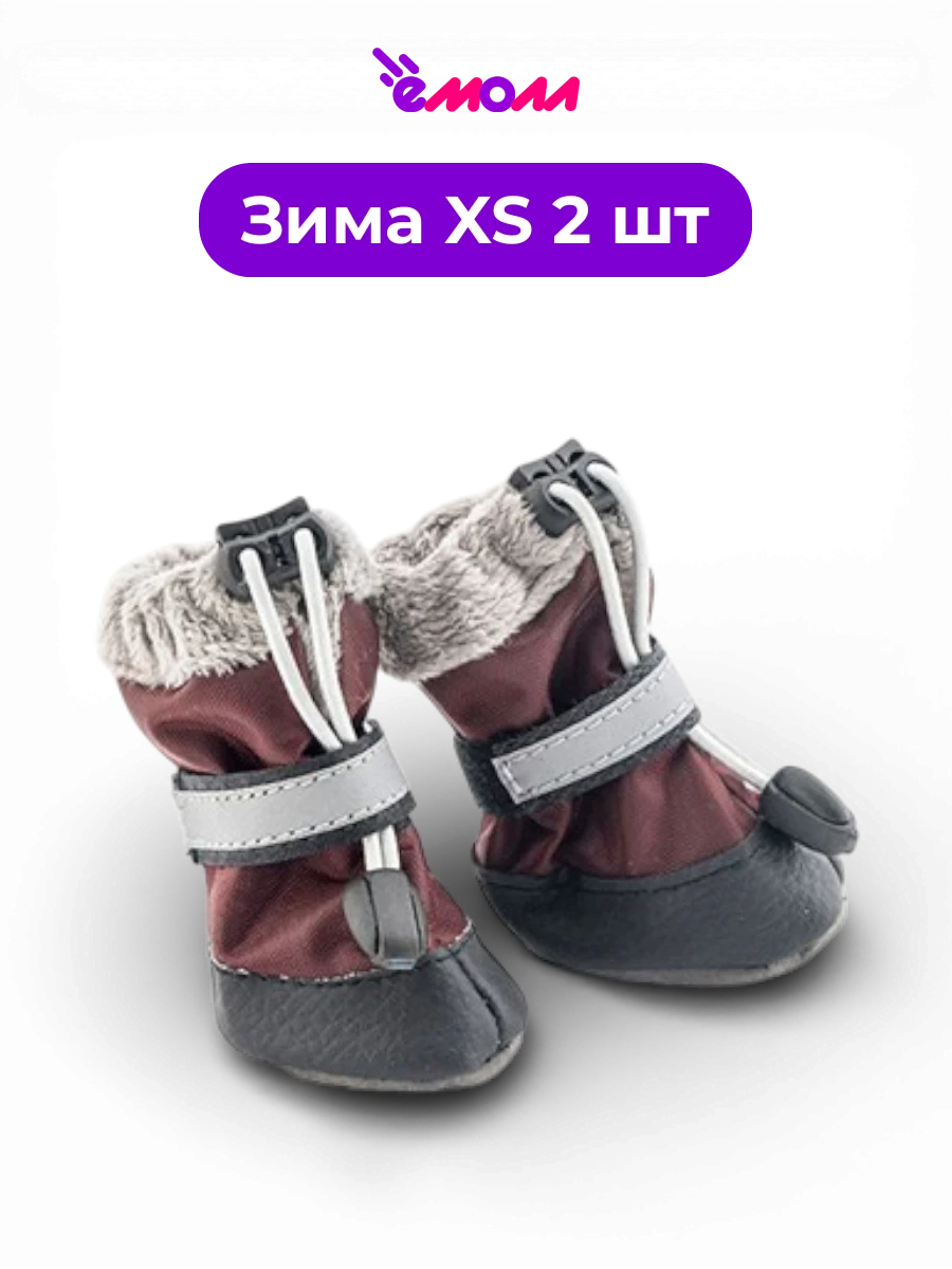 Дарэленд ботинки для собак и кошек утеплённые XS с меховой подкладкой бордовые 2 шт