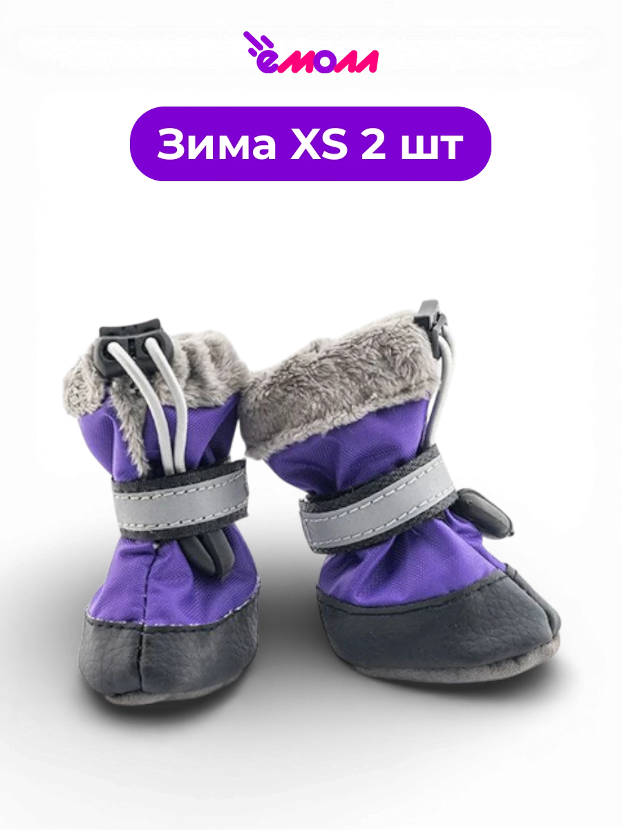 Дарэленд ботинки для собак и кошек утеплённые XS с меховой подкладкой фиолетовые 2 шт