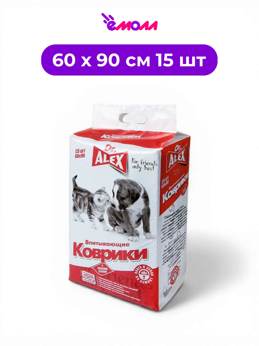 ДОКТОР АЛЕКС пеленки гигиенические одноразовые для животных с суперабсорбентом SAP 60 x 90 см 15 шт