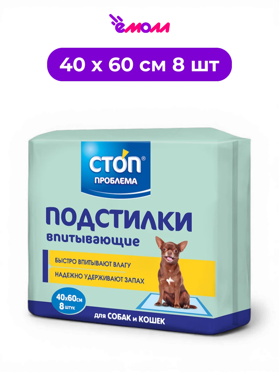 STOP-проблема пеленки одноразовые гелевые для кошек и собак 40 х 60 см 8 шт