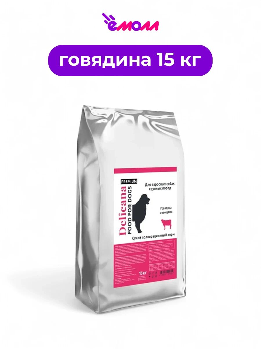 Delicana сухой корм для собак крупных пород говядина с овощами 15 кг