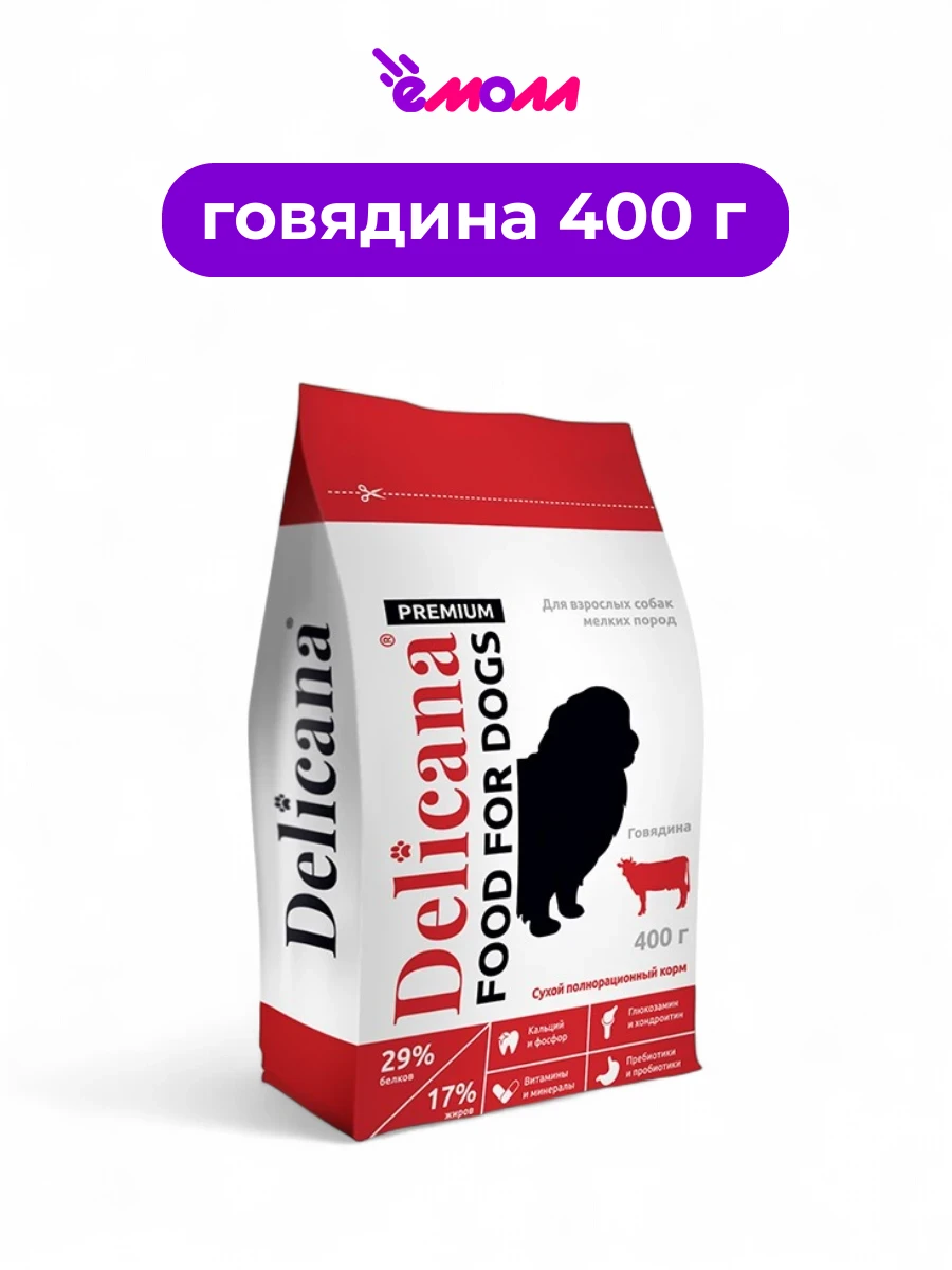 Delicana сухой корм для собак мелких пород говядина 400 г