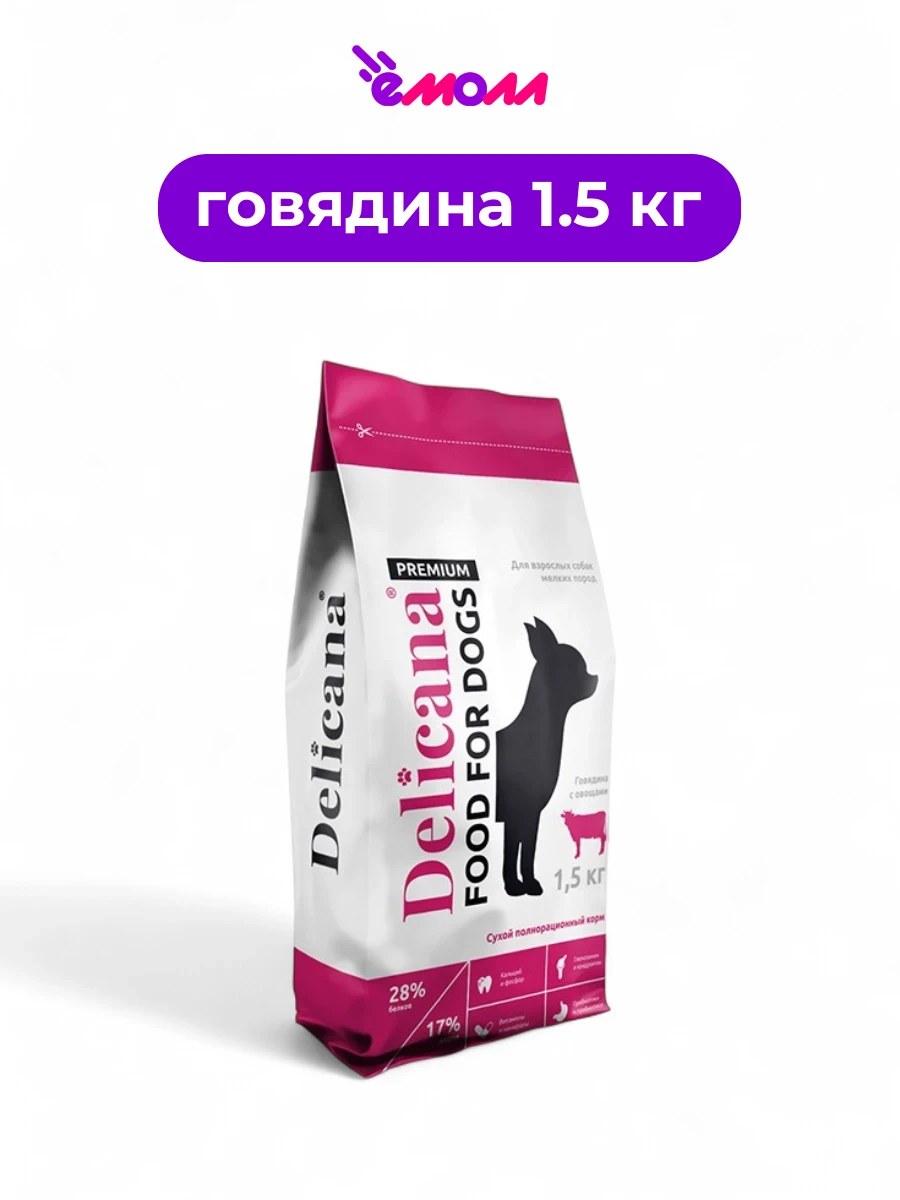 Delicana сухой корм для собак мелких пород говядина с овощами 1.5 кг