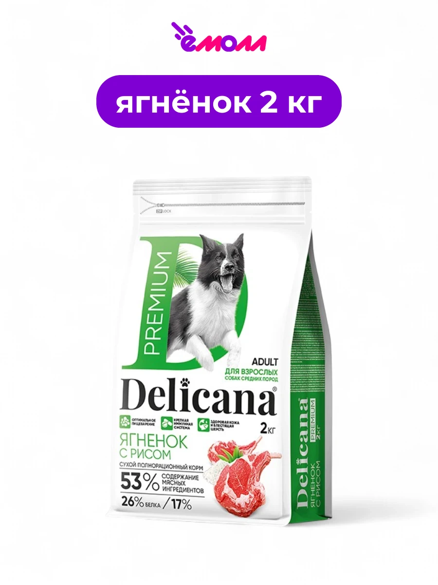 Delicana сухой корм для собак средних пород ягненок с рисом 2 кг