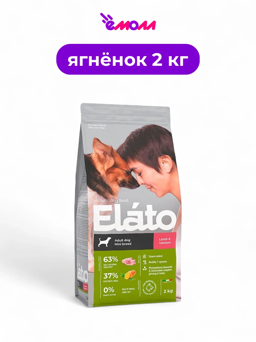 Elato корм для взрослых собак мелких пород с ягненком и олениной Holistic 2 кг