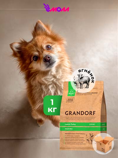 Grandorf сухой корм для взрослых собак мелких пород с ягнёноком и индейкой 1 кг
