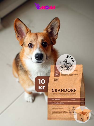 Grandorf сухой корм для взрослых собак средних и крупных пород утка с индейкой 10 кг