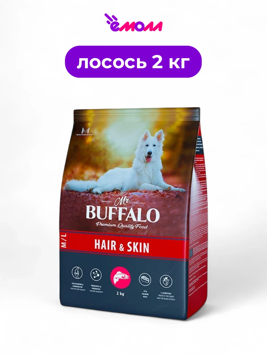 Mr.Buffalo сухой корм для собак средних и крупных пород Hair & Skin Care лосось 2 кг