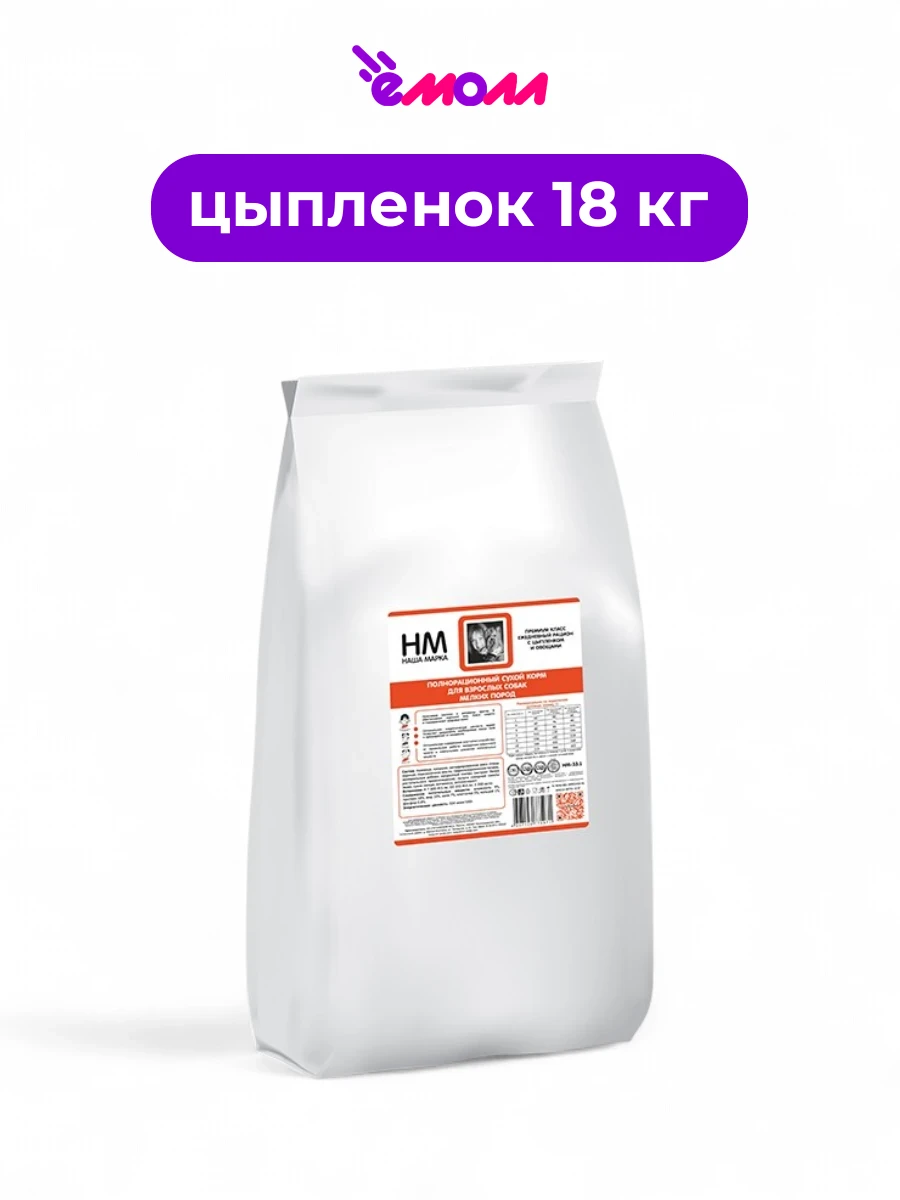 Наша марка корм для взрослых собак мелких пород с цыпленком и овощами полнорационный 18 кг