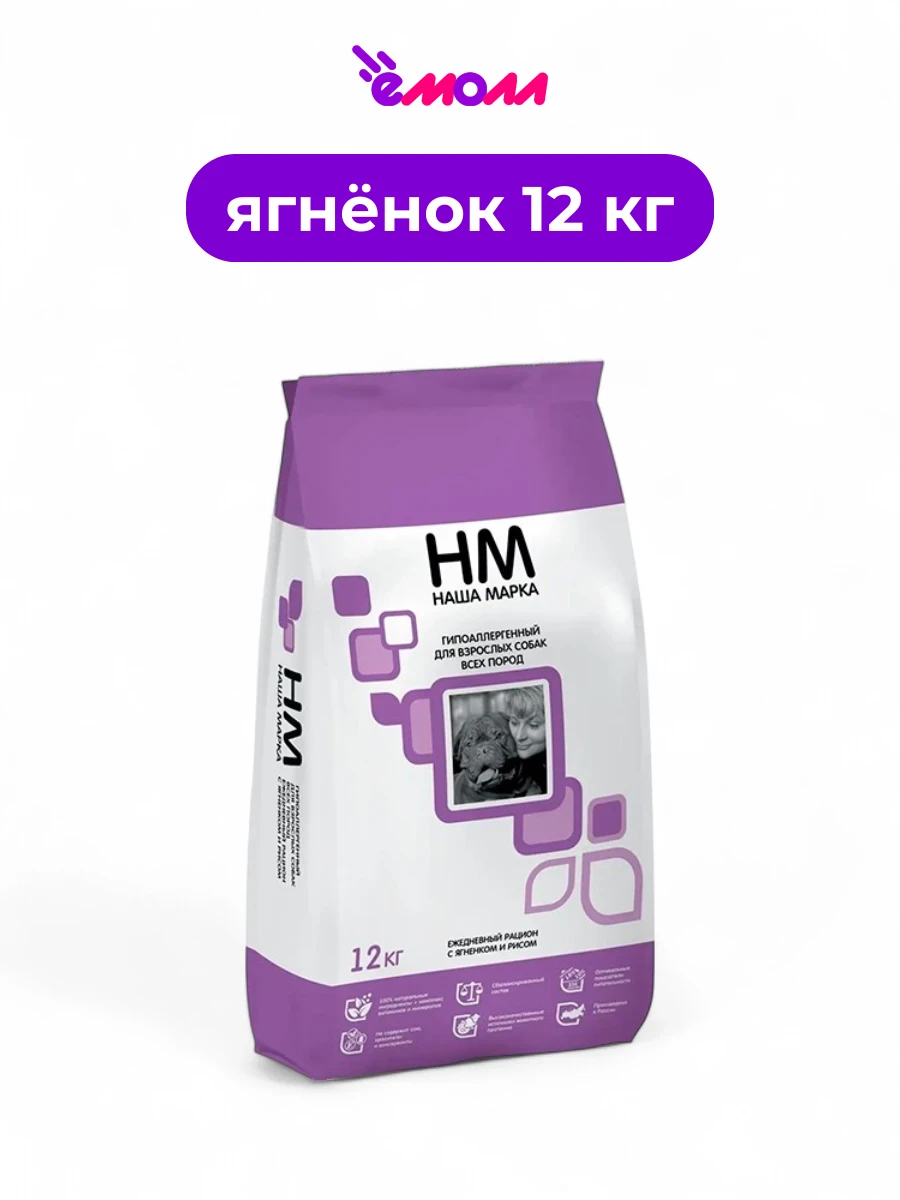 Наша Марка корм для взрослых собак всех пород ягненок рис полнорационный 12 кг