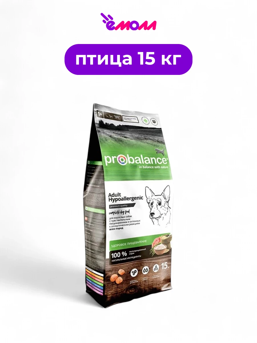 ProBalance Hypoallergenic — это сухой корм премиум-класса, специально разработанный для взрослых собак всех пород с чувствительным пищеварением и склонностью к аллергии. Его уникальная формула с ограниченным набором ингредиентов снижает риск возникновения аллергических реакций, обеспечивая при этом полноценное питание.