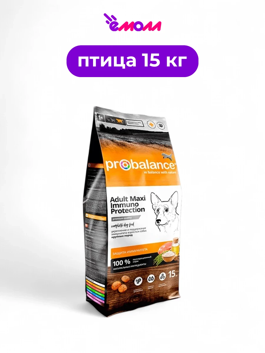 ProBalance Immuno Adult Maxi — это полнорационный сухой корм премиум-класса, специально разработанный для взрослых собак крупных пород. Его уникальная формула направлена на укрепление иммунитета и поддержание общего здоровья питомца.