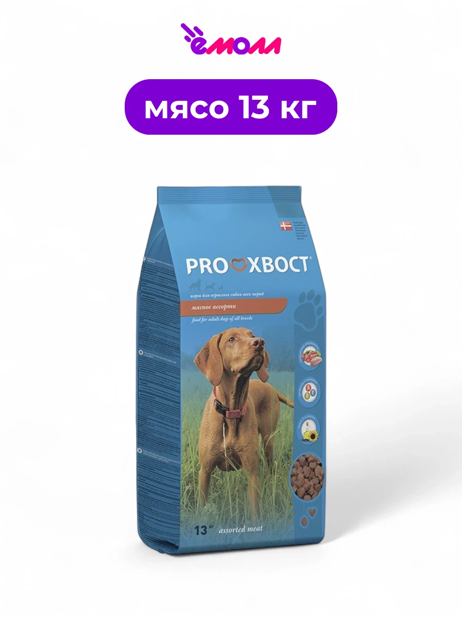 PROХВОСТ корм сухой для собак мясное ассорти 13 кг