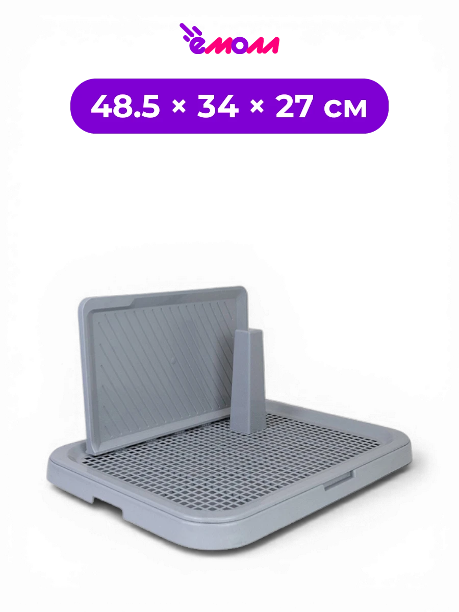 Съёмная защитная стенка закрывает стены и пол от брызг, что особенно удобно в период приучения к туалету. В комплекте предусмотрен съёмный столбик для кобелей — его, как и стенку, можно установить в удобном месте на решётке или при необходимости убрать.