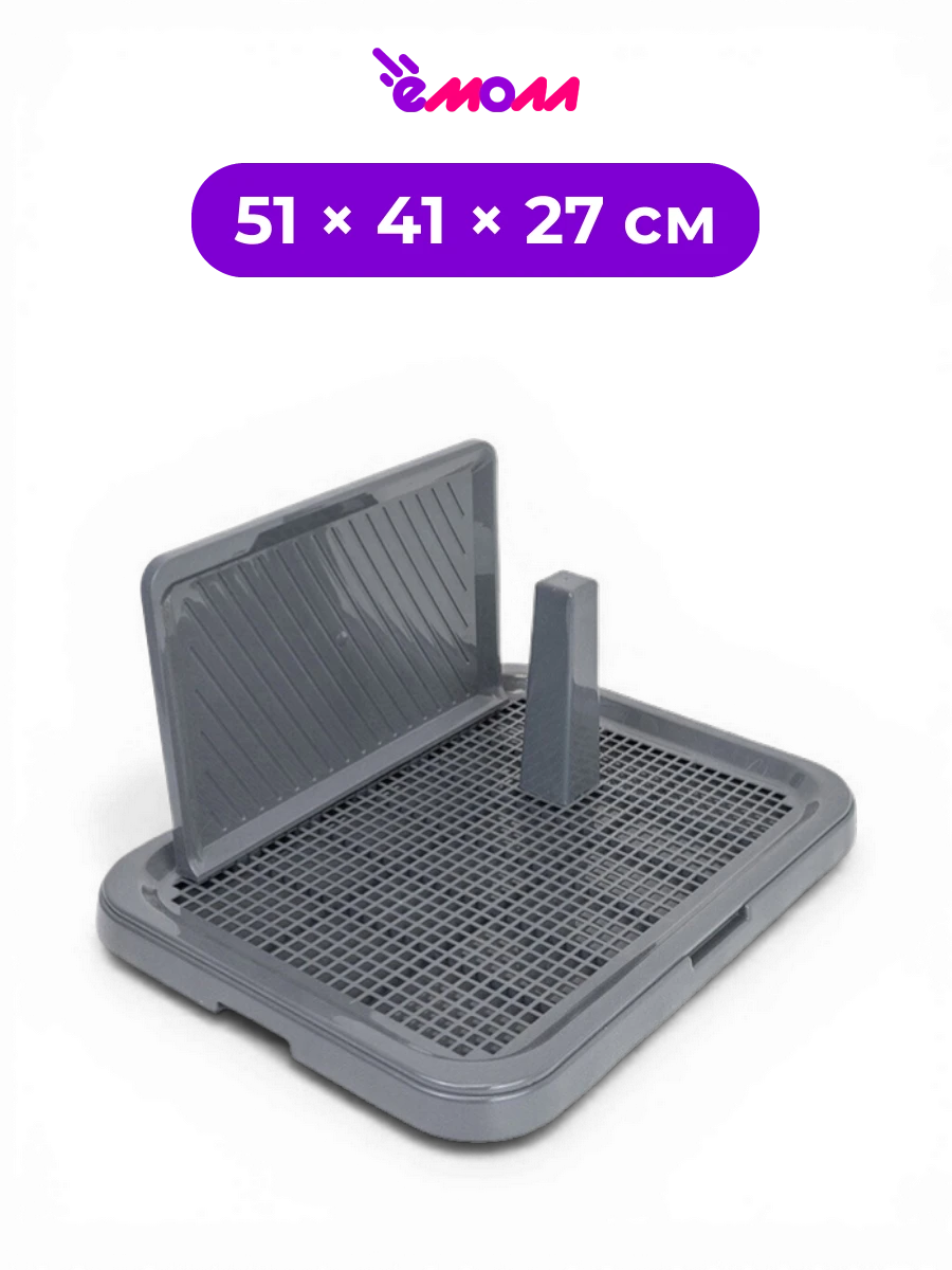 Дарэленд туалет для собак средний с сеткой со столбиком и стенкой Виконт 51 × 41 × 27 см серый полипропилен