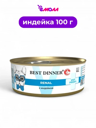 Best Dinner консервы для собак с индейкой Renal VET PROFI 100 г