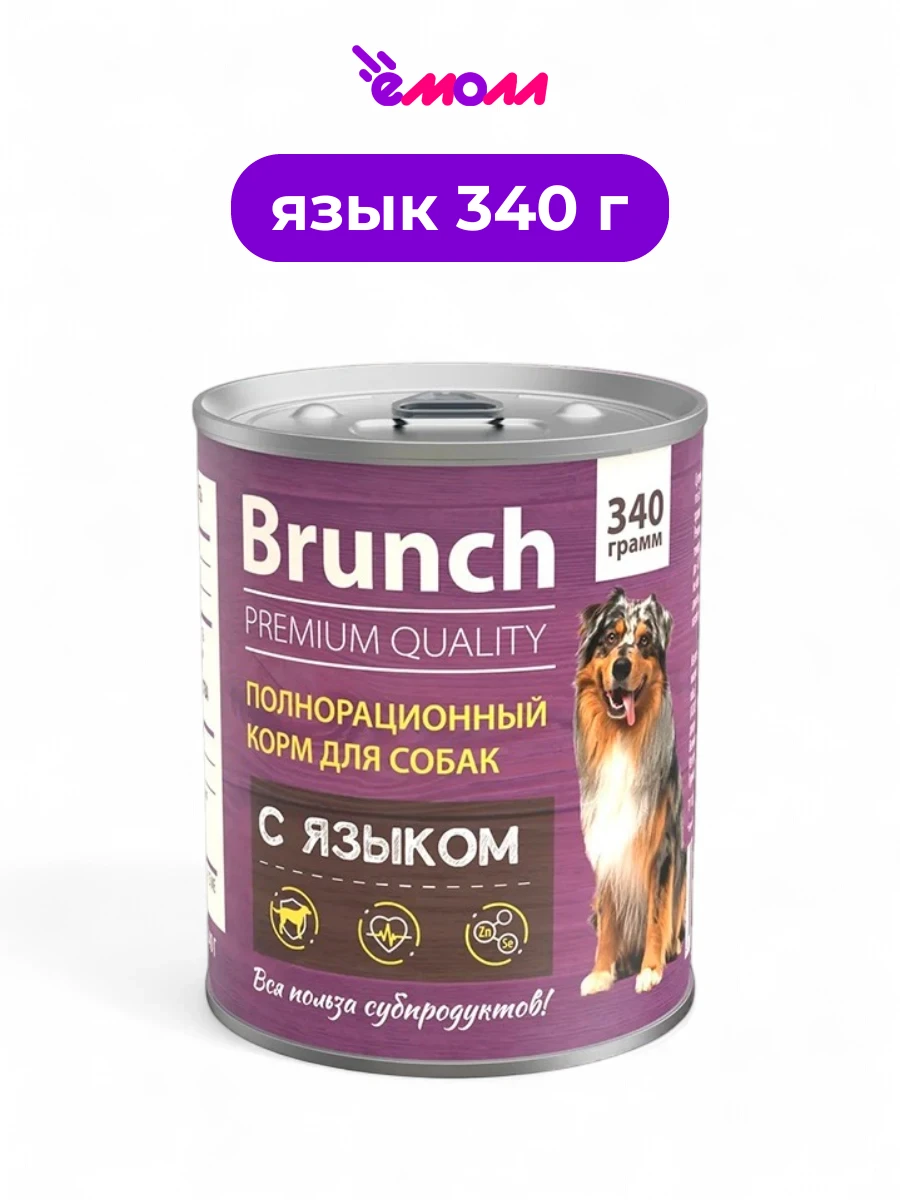 Brunch консервированный полнорационный корм для собак с языком 340 г