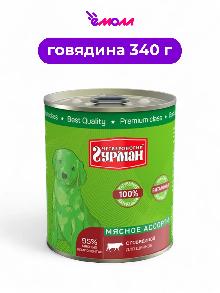 Четвероногий Гурман консервированный корм для щенков говядина 340 г
