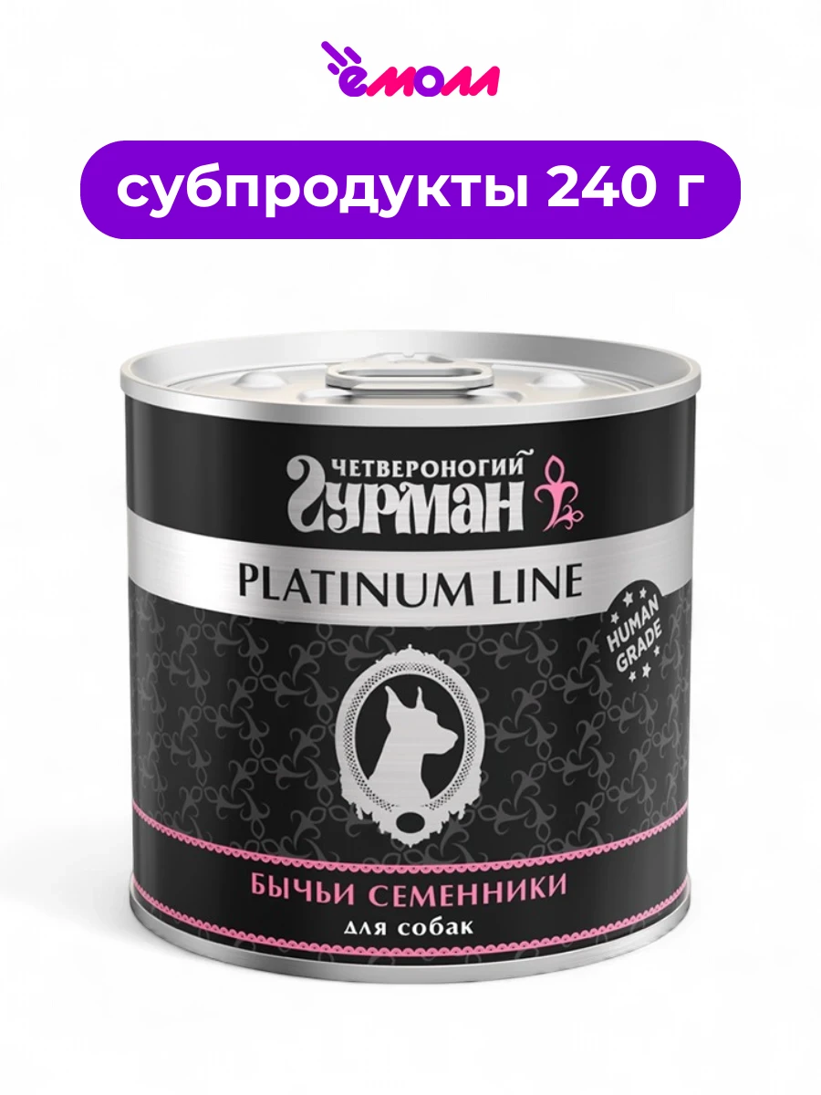Четвероногий Гурман консервированный корм для собак Platinum бычьи семенники 240 г