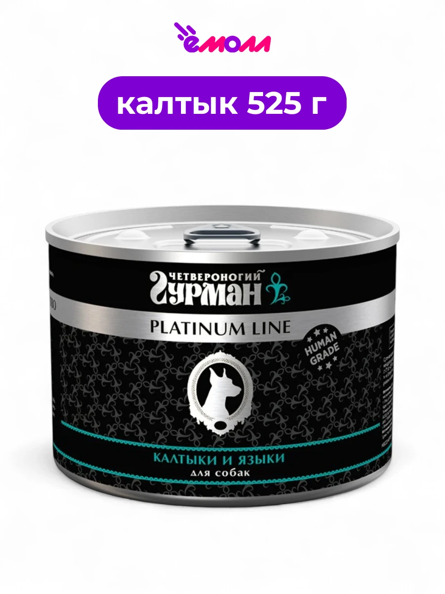 Четвероногий гурман консервированный корм для собак Platinum калтыки и языки в желе 525 г