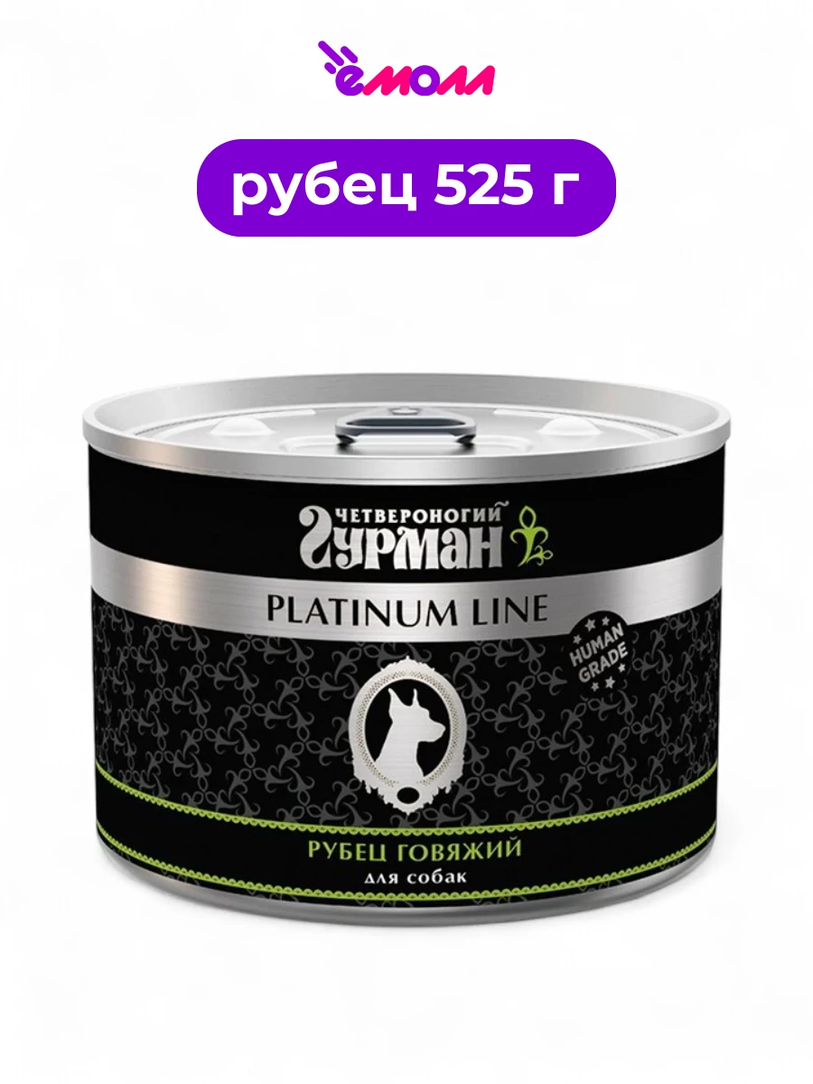 Четвероногий гурман консервированный корм для собак Platinum рубец говяжий в желе 525 г