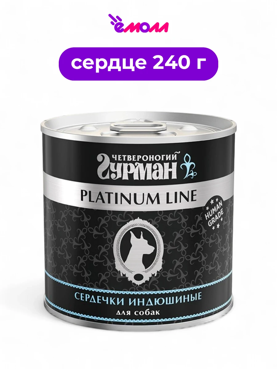 Четвероногий Гурман консервированный корм для собак Platinum сердечки индюшиные 240 г