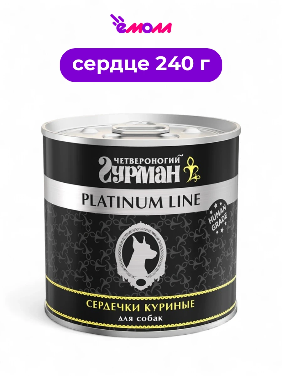 Четвероногий Гурман консервированный корм для собак Platinum сердечки куриные 240 г
