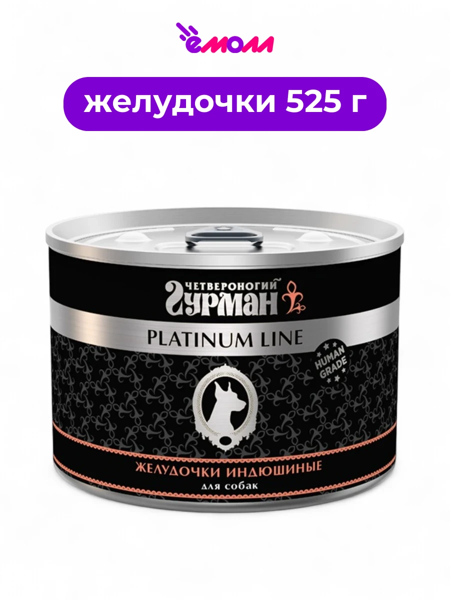 Четвероногий Гурман консервированный корм для собак Платинум желудочки индюшиные в желе 525 г