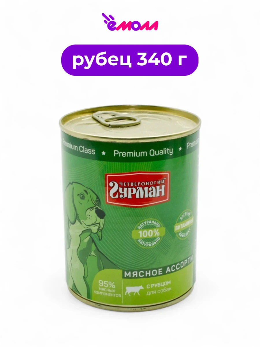 Четвероногий гурман консервированный корм для собак рубец 340 г