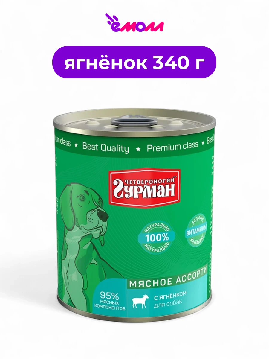 Четвероногий Гурман консервированный корм для собак ягненок 340 г