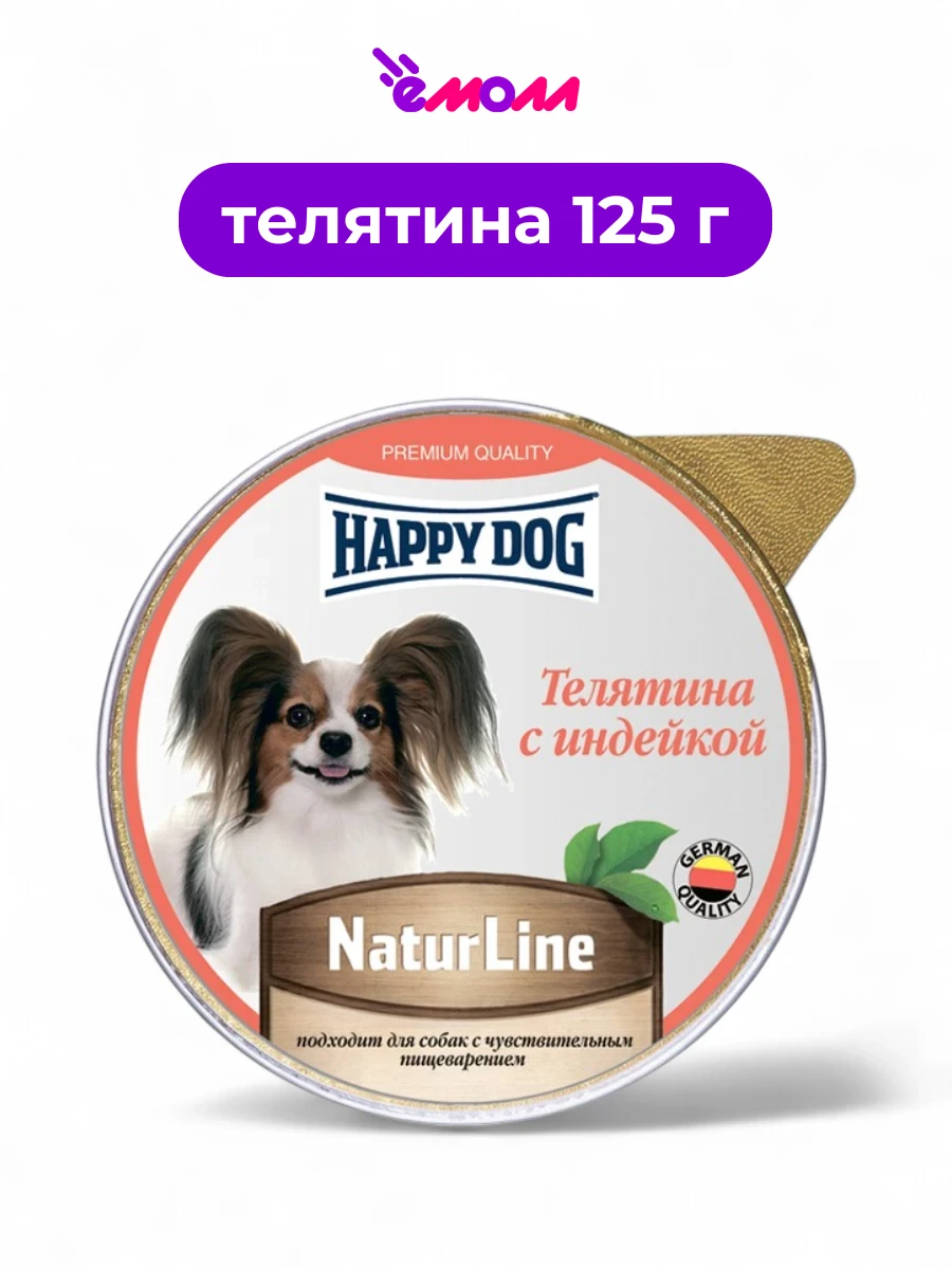 Happy Dog консервированный корм для собак Natur Line паштет с телятиной и индейкой 0,125 кг